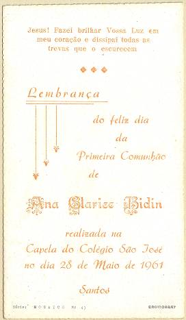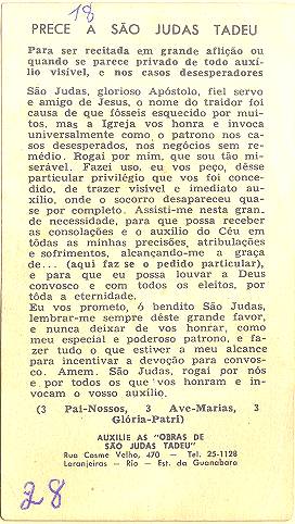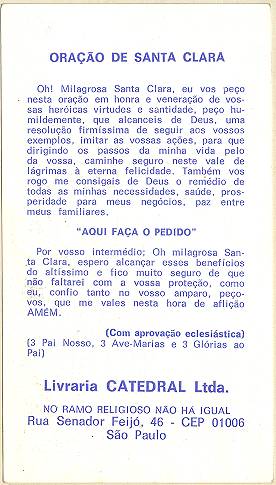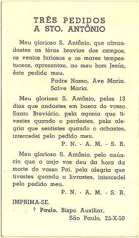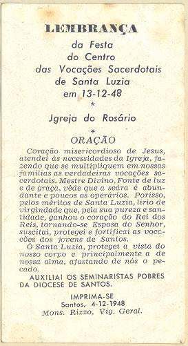com a imagem do santo homenageado e no verso uma prece. Em Santos, há exemplares do início do século XX, em alguns casos impressos especialmente para a festividade, em outros apenas comprados em São Paulo ou no exterior para distribuição em certa data,