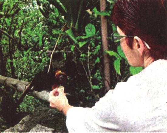 Angélica Dias alimenta um mico-leão