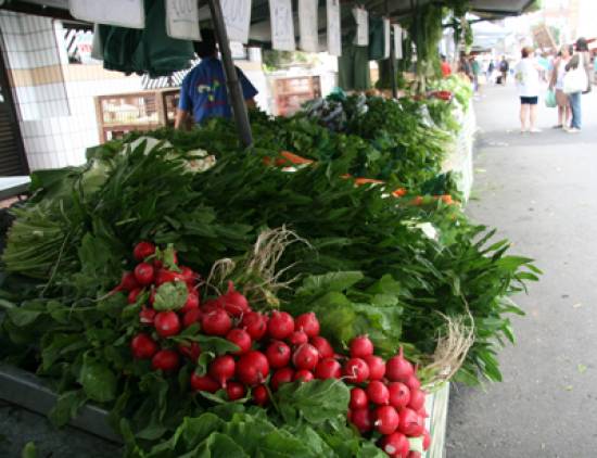 com o feirante. Além disso, o produto (da feira) é mais bonito e fresquinho. A feira é uma cultura mundial, a daqui é bem igual a da França, por