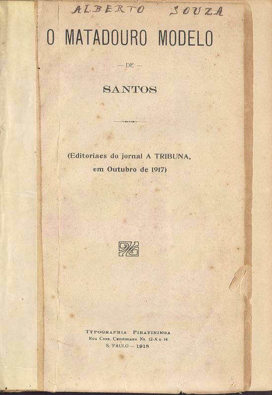 anos após a entrada em funcionamento do Matadouro Municipal de Santos, este raro livro reúne uma série de editoriais publicados pelo autor, o jornalista
