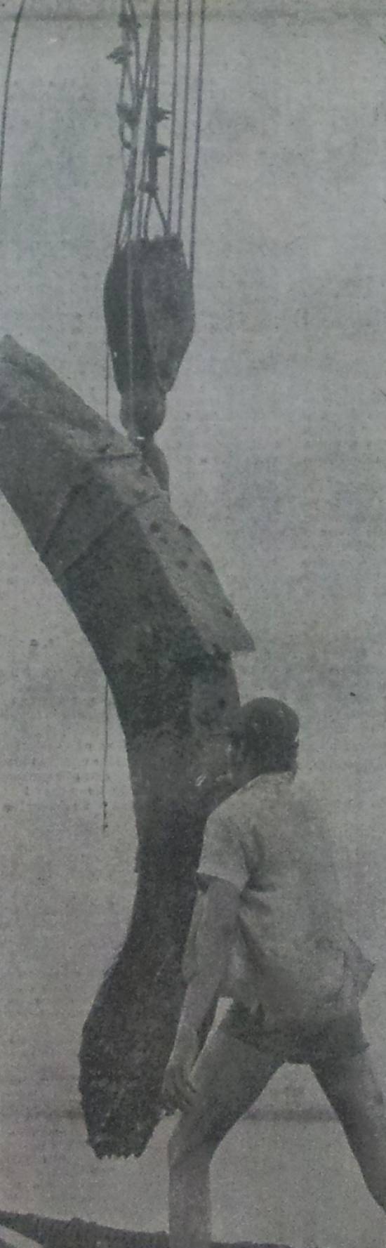 Quilha retirada – Os trabalhos pra a remoção da quilha foram iniciados por volta das 7,30 horas, participando da operação o mergulhador Itamar e mais seis tripulantes, orientados por Grievs. "Impressionante, fabuloso", disse
