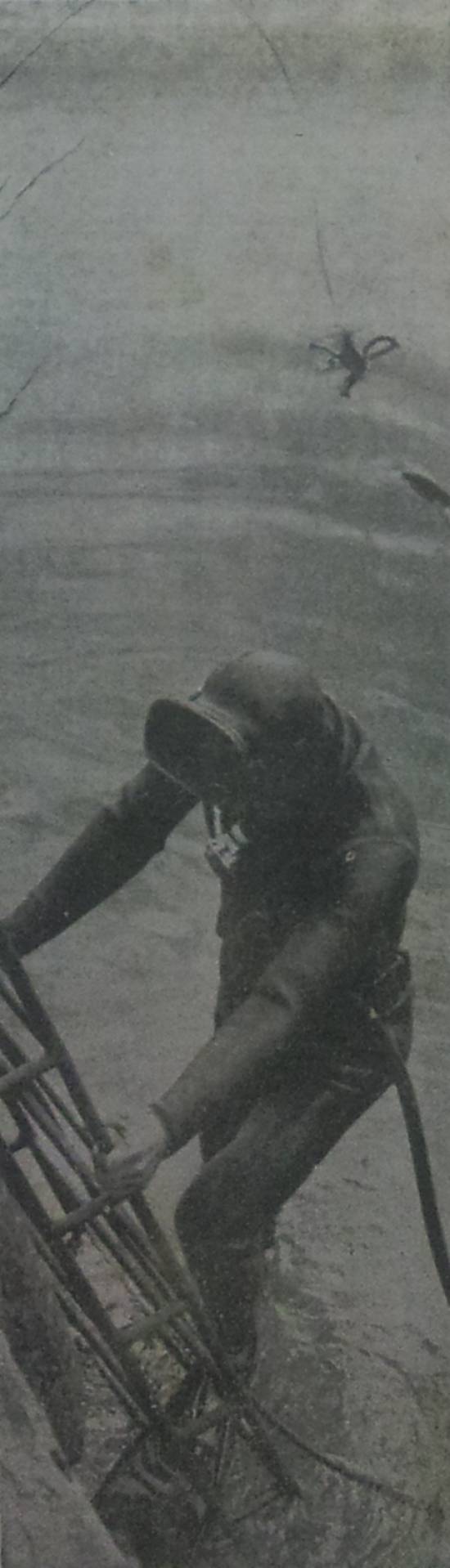 Abrindo novo berço de atracação de navios destinados ao cais da Alemoa, uma draga do DNPVN tocou num corpo resistente encontrado no fundo do mar. Depois da