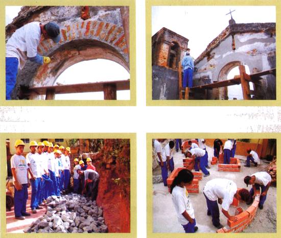 Jovens do Projeto restaurando a torre