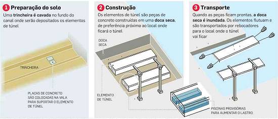 desse tipo de construção se deve ao solo arenoso da área. Se um túnel convencional, escavado, tivesse de ser construído, ele precisaria ficar a,
