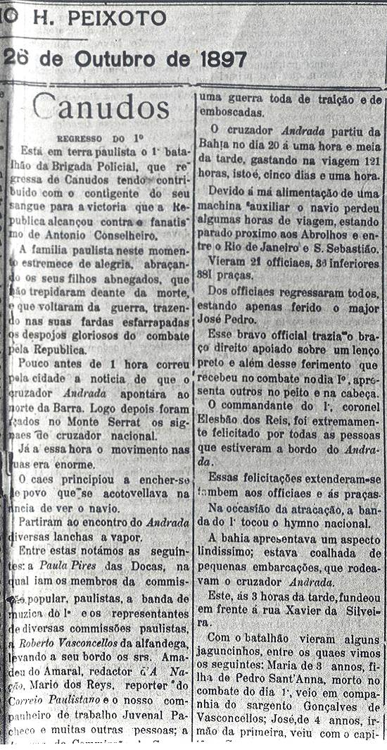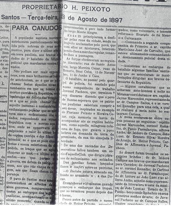 Alguns dos registros disponíveis da guerra travada nos sertões da Bahia estão no jornal Diario de Santos. Na