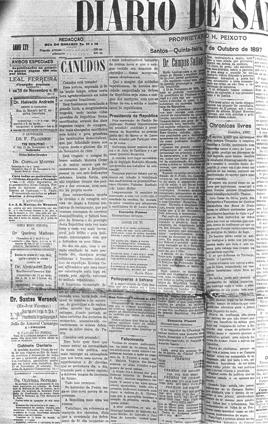 Na primeira página da edição de terça-feira, 26 de outubro de 1897, o Diario de Santos registrou