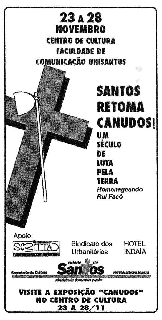percepção daquele conflito, um século depois, quando organizou, em 23 a 28 de novembro de 1993, a exposição e ciclo de debates "Santos Retoma Canudos!
