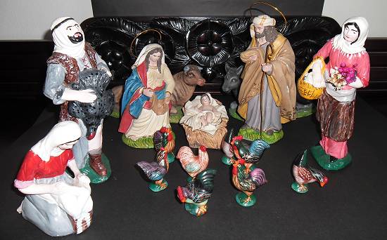 Presépio de 1952, feito em argila cozida e muito frágil, popular até o final dos anos 1970, quando as peças passaram a ser feitas em gesso