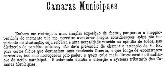 pelo poder, a quem cabe mais diretamente a fiscalização da ação municipal. E sobretudo desafia a atenção do sistema tributário das Câmaras Municipais.