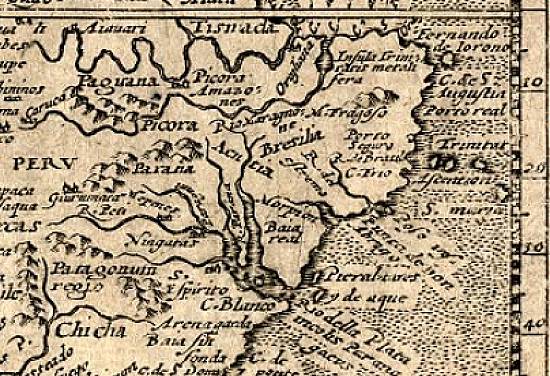 No detalhe, observa-se o litoral brasileiro, incluindo abaixo de um rio (que é indicado na direção do
