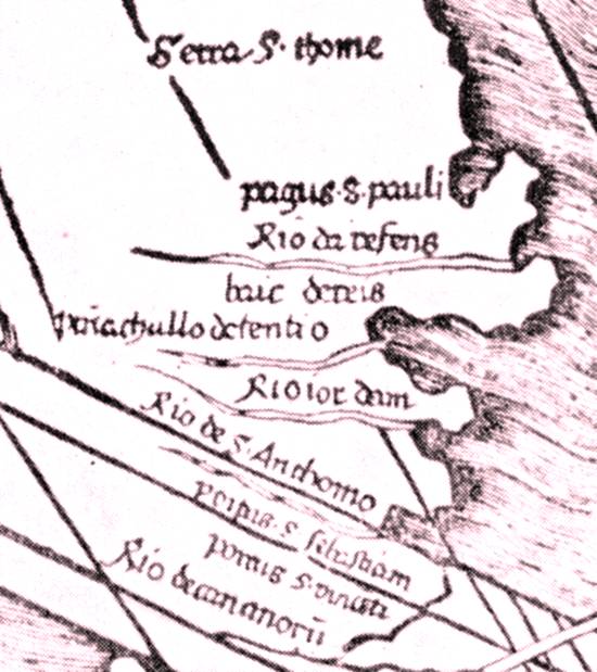 aproximadamente correspondente à boca do Rio Macaé, no atual Estado do Rio de Janeiro, e que, em 1507, Waldseemüller chega a converter em pagus S.