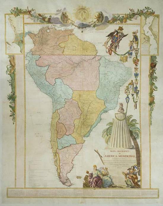 Mapa Geográfico de America Meridional, produzido em Madrid em 1775, por Juan de La Cruz Cano y Olmedilla, é um trabalho bastante detalhado e