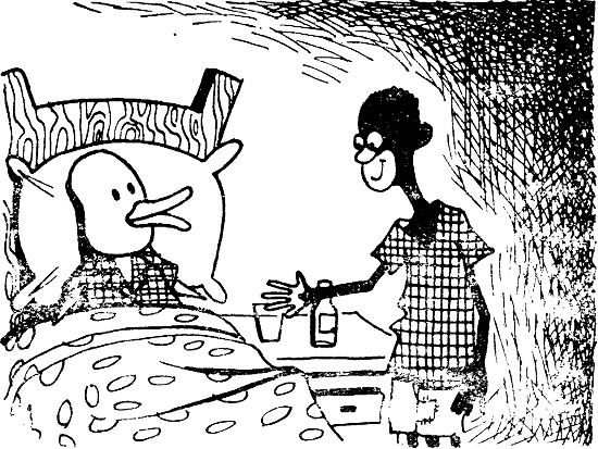 Jabuca se despediu, prometendo voltar na noite de Natal. Patolo continuou deitado. Patilda dava-lhe o remédio com  pontualidade e seu irmãozinho, no desejo de ficar bom, tomava.