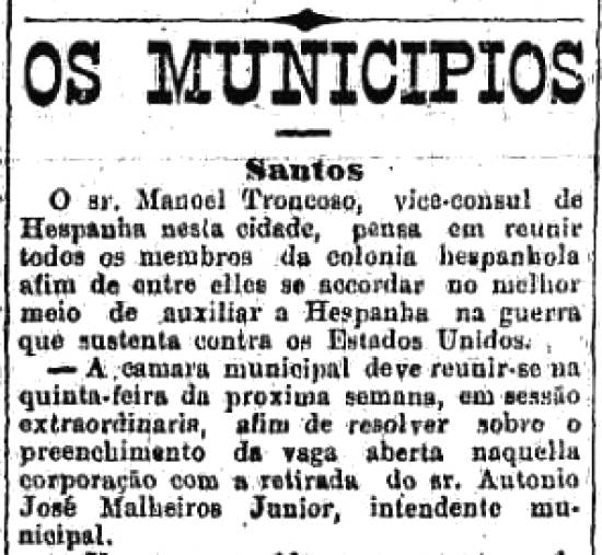 Registra O Estado de São Paulo, na página 2 da edição de 30 de abril de 1898 (Acervo Estadão - ortografia atualizada nesta transcrição):