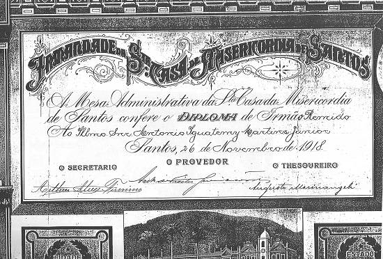 Misericórdia de Santos a Antonio Iguatemy Martins Júnior, em 26 de novembro de 1918