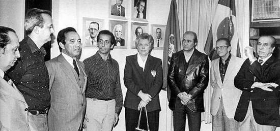 Em 1981, o então prefeito de Santos, Paulo Gomes Barbosa (o terceiro a partir da esquerda), participou da inauguração da Galeria de Presidentes da Câmara de Dirigentes Lojistas (CDL) Santos-Praia