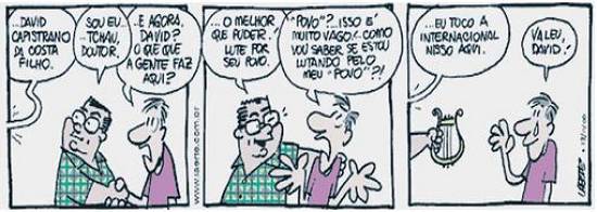 HOMENAGEM PÓSTUMA - O cartunista Laerte Coutinho, mais conhecido como Laerte, desenhou a seqüência de quadrinhos acima. A tirinha foi publicada no jornal Folha de S. Paulo m 13 de novembro
