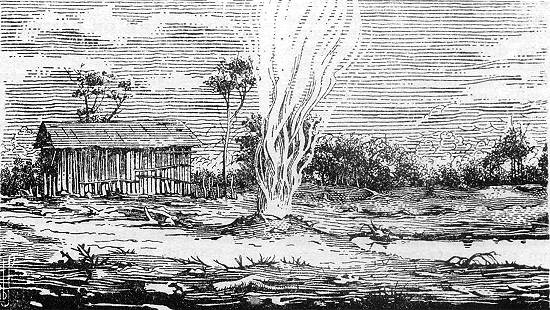 escura e gases, com forte pressão. O fenômeno, logo identificado como sendo um tipo de poço artesiano, atraiu curiosos inclusive da capital paulista e