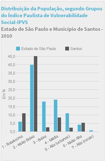 Nas edições de 2008 e 2010 do IPRS, Santos classificou-se no Grupo 1, que engloba os municípios com bons indicadores de riqueza, longevidade e escolaridade.