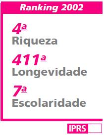 Nas edições de 2000 e 2002 do IPRS, Santos manteve-se no Grupo 2, que agrega os municípios bem posicionados na dimensão riqueza, mas com deficiências em um dos indicadores de longevidade e escolaridade. Seus níveis de renda e escolaridade superaram