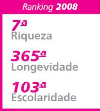 pertencia ao Grupo 2, obteve progresso na área social e foi classificado em 2008 no Grupo 1, que agrega os municípios com bons indicadores de riqueza, longevidade e escolaridade.