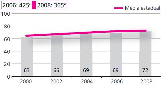 Estado, enquanto o de escolaridade está acima da média estadual.