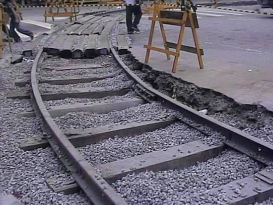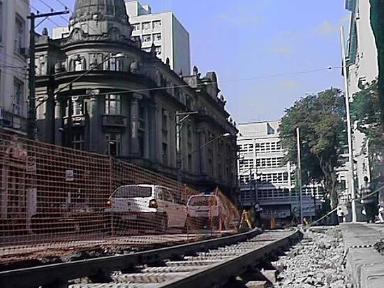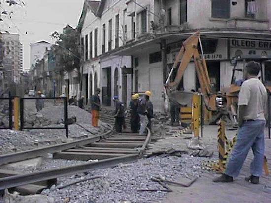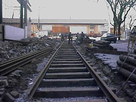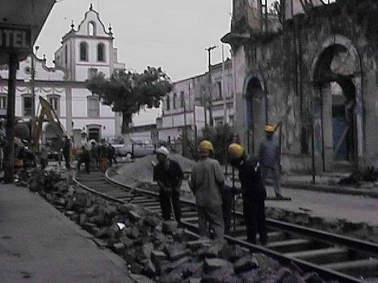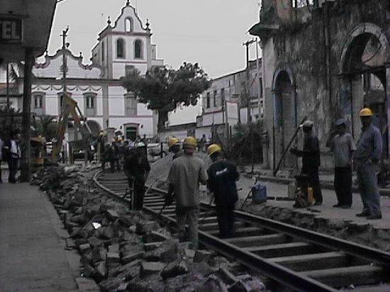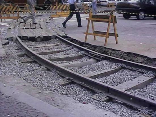 Em alguns pontos, os novos trilhos estão se encontrando com o velho traçado das linhas dos antigos bondes, cujos trilhos não chegaram a ser retirados nesses anos todos.