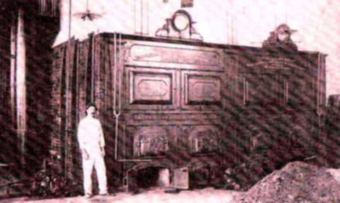 As caldeiras "Cahall" em funcionamento em 1900, quando da inauguração dos bondes em São Paulo (fonte: "História da Light", Edgard de Souza)