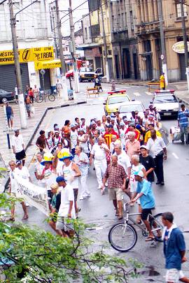 Mais imagens do segundo Carnabonde, realizado na área central de Santos na tarde de 9/2/2002: