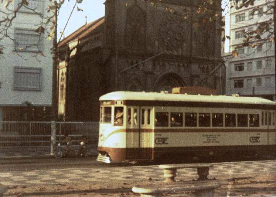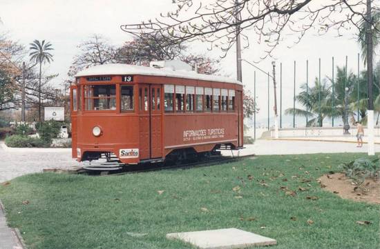 turístico na orla praiana de Santos, eis algumas fotos do bonde, em 1983, quando ele circulava em uma linha defronte à Basílica de Santo António do