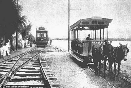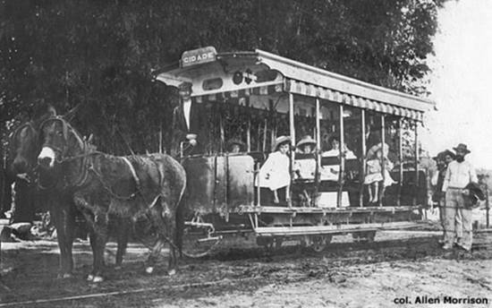 O bonde de mula é do mesmo tipo que o da foto de 1900 (parece ter até as mesmas mulas!). Alguns destes carros, reformados, trafegam como reboques ainda hoje na linha de Itatinga, que tem a mesma bitola de 800 mm, perto de Bertioga/SP.