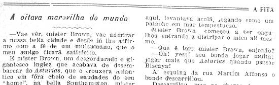 Asturias, que o trouxera Atlântico afora cheio de saudades do seu home, na bela Southampton, mister Brown o meu grande amigo escancarou a