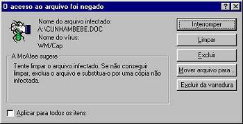 verificação protetora do anti-vírus, esquecendo que