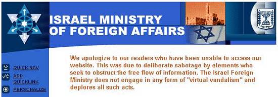 atingindo os sites do governo de Israel. Nos Estados Unidos, órgãos