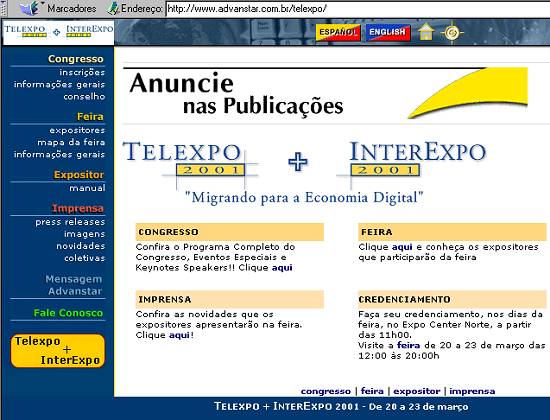 do site da Telexpo + InterExpo 2001 que facilita o trabalho dos jornalistas