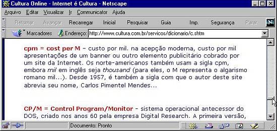 pelo enunciado do verbete "cpm = cost per M", o editor de Novo Milênio,