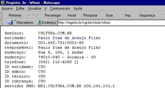 de um site em Goiânia, para o quê nem precisou fazer contato