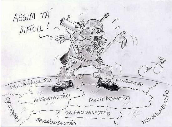 Paquistão, Casaquistão...) é ironizada nesta imagem