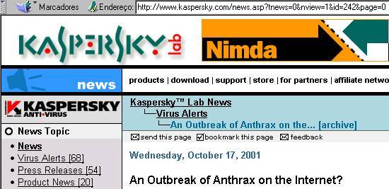 dia 17/10/2001, com a ironia de que, desta vez, é um vírus