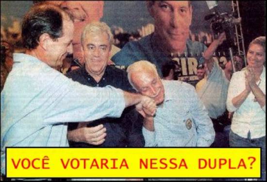 é o próprio galinheiro!") com o candidato a presidente da República, Ciro Gomes, dizer que vota nele nas eleições-2002. Com essa