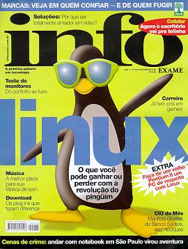 revista mensal da Editora Abril destaca como matéria de capa o pingüim do sistema operacional gratuito Linux, já devidamente