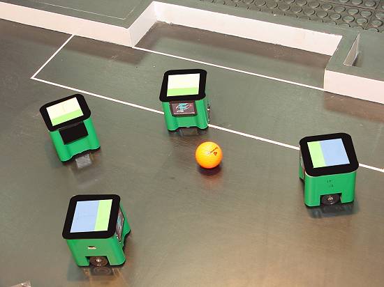 pontuação. O outro robô joga futebol e faz parte de um time que tem de três a cinco jogadores, incluindo goleiro. Este último robô