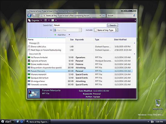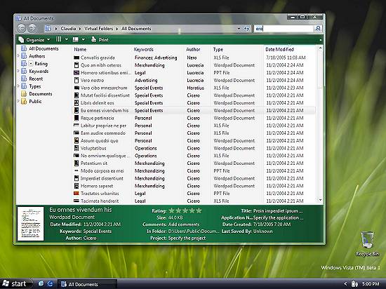 O Windows Vista Beta 1 tem como principal foco o aprimoramento significativo de alguns dos