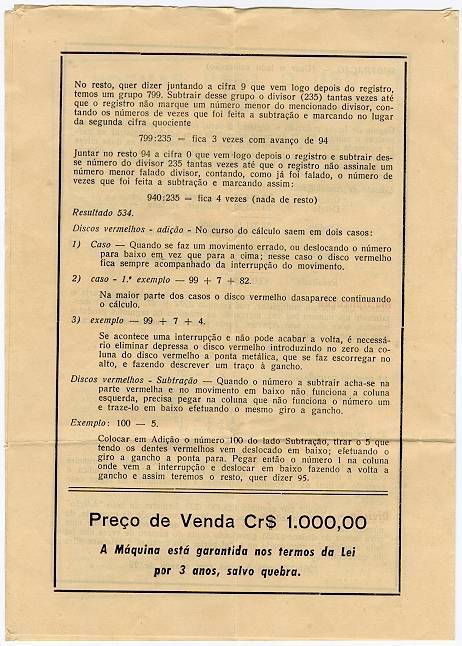 Calculadora mecânica vendida no Brasil por volta de 1960