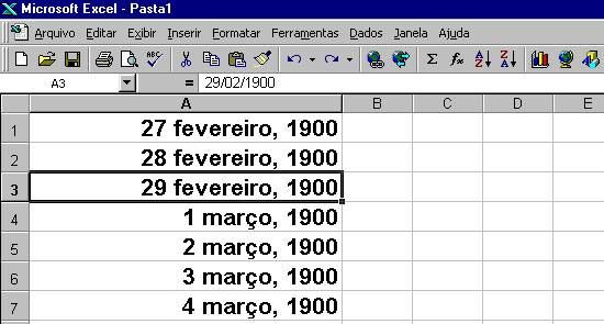 de 1900 (é só digitar 28/02/1900 numa célula e arrastar