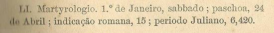 Martirológio. Dia 1º de janeiro, sábado; Páscoa, 24 de abril; indicação romana,