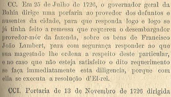 CCXL – No dia 6 de julho de 1737, falece na Bahia o