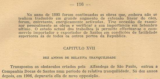 Transpostos os obstáculos criados pela Alfândega de São Paulo, entrou a Companhia Docas. Só dez anos depois, em 1906, depararia ela