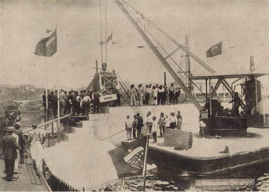 Assentamento da última pedra do capeamento do cais no trecho de Paquetá aos Outeirinhos (1909)