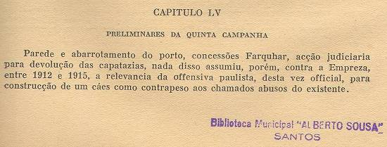 uma ou duas questões menores, como as capatazias sobre água, o Estado não formou, quanto ás Docas de Santos, com a maioria dos jornais paulistas.